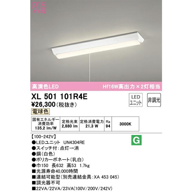 βオーデリック/ODELIC【XL501101R4E】ベースライト 直付型(逆富士型(幅150:プルスイッチ付)) 高演色LED 電球色 非調光 LEDユニット型 20形 3200lmタイプ