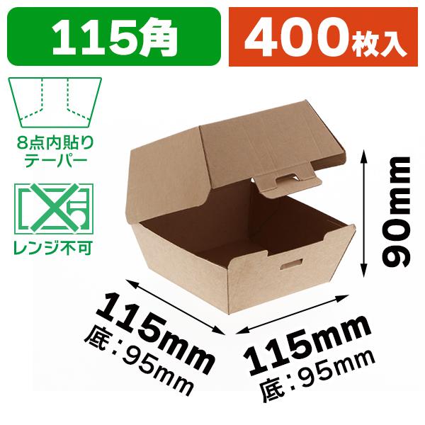 《仕様》───────────────── [サイズ]115×115×90mm (底:95×95mm) [材 質]未晒クラフト紙+内側耐油加工 [ 色 ]クラフト [形 状]8点内貼テーパー(フタ付き) [品 種]食品テイクアウト容器 [入 数]400個入 [単 価]1個あたり@30.6円(税別) [型 番]K05-4901755658538-4H─────────────────────●ナチュラルテイストの食品箱です。●ハンバーガー以外にも使用頂けます。●底面:95×95mm●20個入「(テイクアウト用)ネオクラフト バーガーBOX 1個用(K05-4901755658538)」はこちら