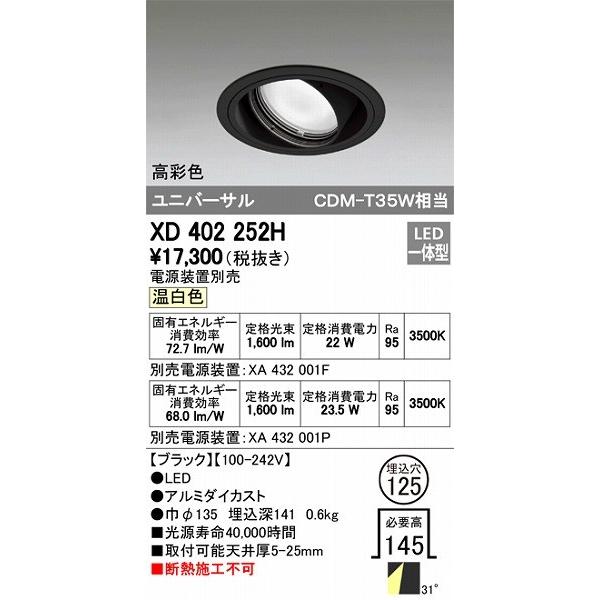 オーデリック XD402252H ユニバーサルダウンライト LED(温白色)