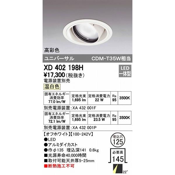 XD402198H オーデリック ユニバーサルダウンライト LED(温白色)