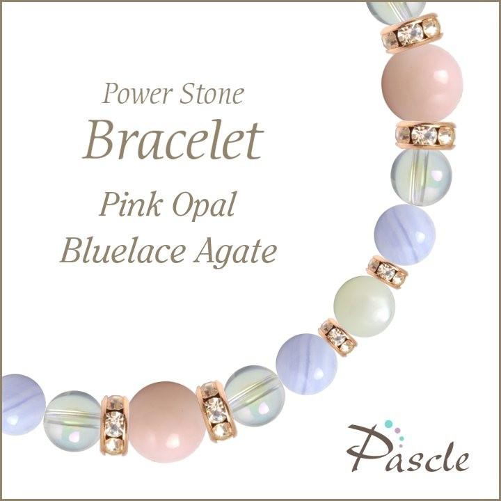 パワーストーン ブレスレット ピンクオパール・ブルーレースアゲート 縁結び 誕生石 10月 癒し 人間関係