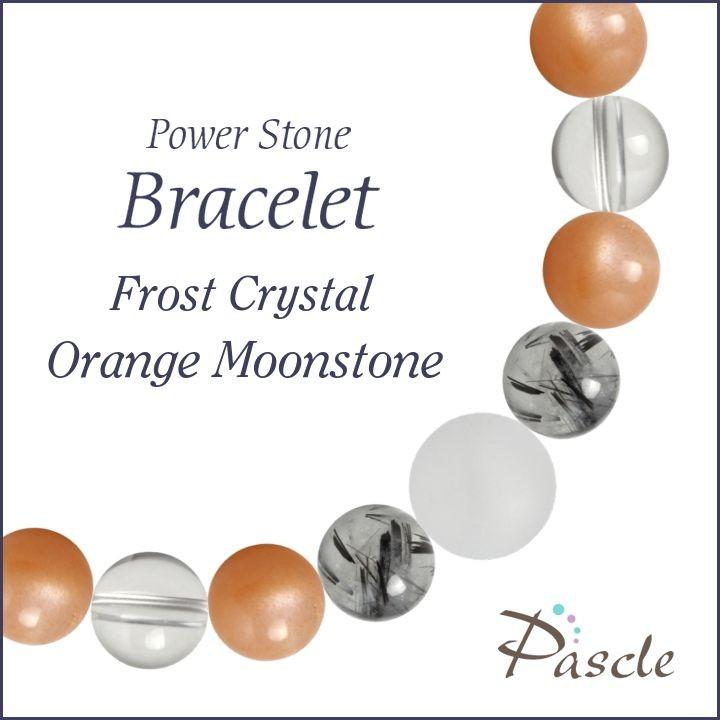 パワーストーン ブレスレット フロスト水晶・オレンジムーンストーン 仕事運 人間関係 恋人・夫婦円満 縁結び 誕生石 6月