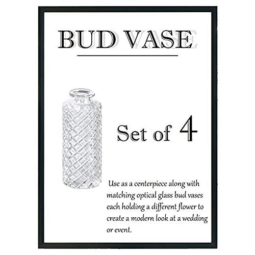 ・クリアダイヤモンドカットバッド花瓶 ・・Color:クリアダイヤモンドカットバッド花瓶・絶妙な職人技 - このボトル型の花瓶はボディ全体に縦のパターンがあり、滑らかなガラスの首につながります - 絶妙な職人技の素晴らしいディスプレイです。・エレガントな外観 - このガラスのつぼみを特別なものにします。大きなブーケやセンターピースにクラシックな結婚式やエレガントなディナーパーティーにご使用ください。・モダンなセンターピース - お部屋のインテリアに上品な雰囲気を加えます。 ウェディングやイベントでモダンな外観を作り出すために、それぞれ異なる花を持つお揃いの光学ガラス バッド 花瓶と一緒に使用してください。・素晴らしいギフトに ? 美しいお花の花瓶よりも、どんな贈り物でしょうか 新鮮なカットフラワーを加えれば、どんな場面にも完璧なプレゼントを。・完璧なサイズ - 4個セットで販売。各つぼの花瓶は高さ5.25インチ、直径2インチ。【お問い合わせについて】