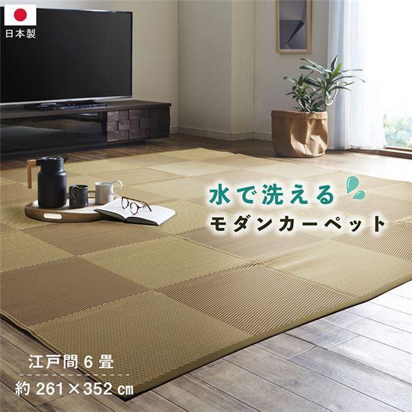 洗える ござ 日本製 国産 カーペット ブラウン 江戸間6畳(約261×352cm) 丈夫 除菌スプレー対応 敷詰 ラグ 敷物 ナチュラルスタイル アウトドア ...〔〕