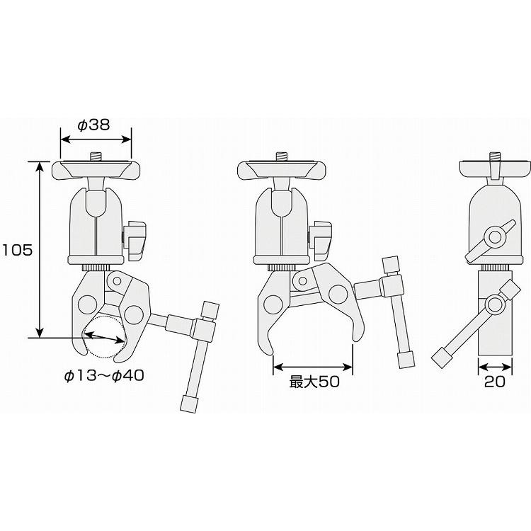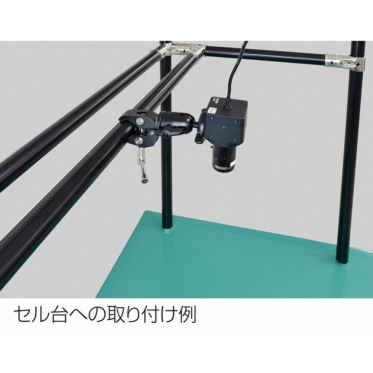 商品説明-スペック●様々な場所への取り付けが可能。●ボールジョイントで自由にカメラの角度を調整することができます。●クランプは13〜40mmφの支柱に対応。●市販のラックやセル台にも取り付けが可能です。