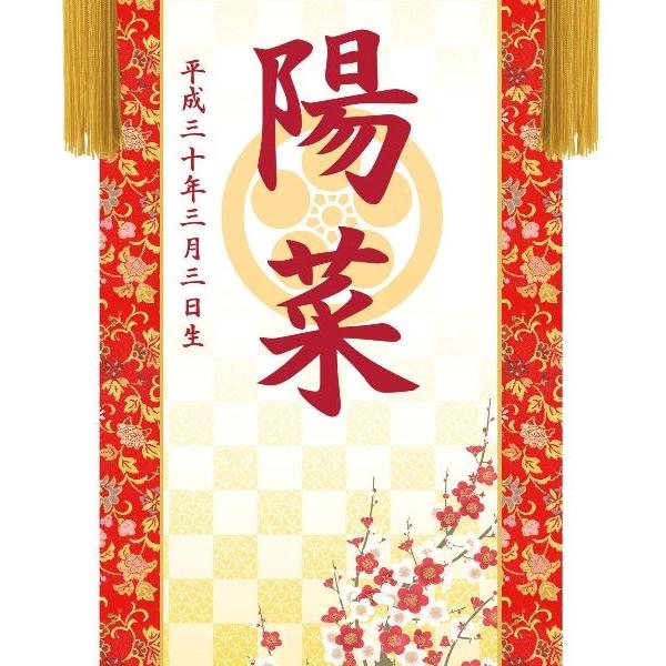 モダン友禅名入掛軸 透かし家紋 桃の節句 吉祥紅白梅 専用スタンド・飾り房付 [大] [KTG-004-d][モダン友禅名入掛軸]桃の節句[受注制作7〜10日キャンセル]"}