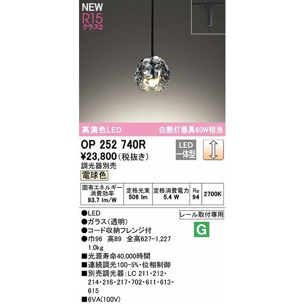 OP252740R オーデリック レール用ペンダントライト LED 電球色 調光