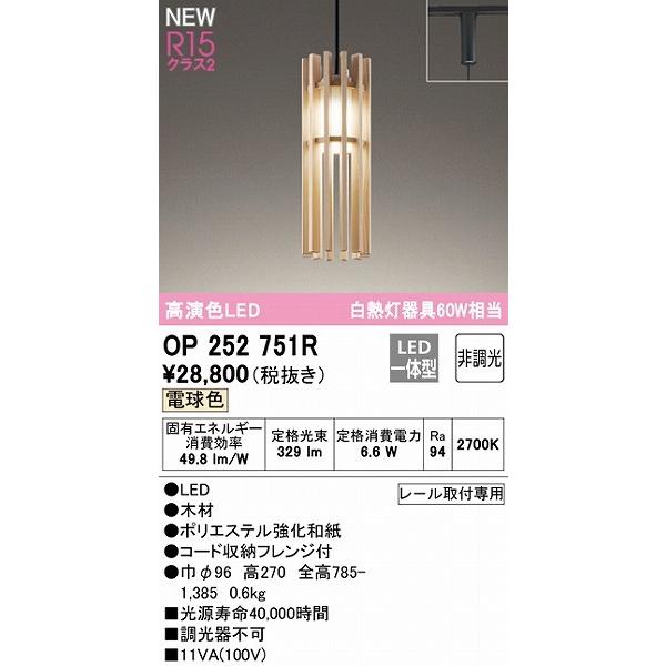 OP252751R オーデリック レール用和風小型ペンダントライト LED(電球色)