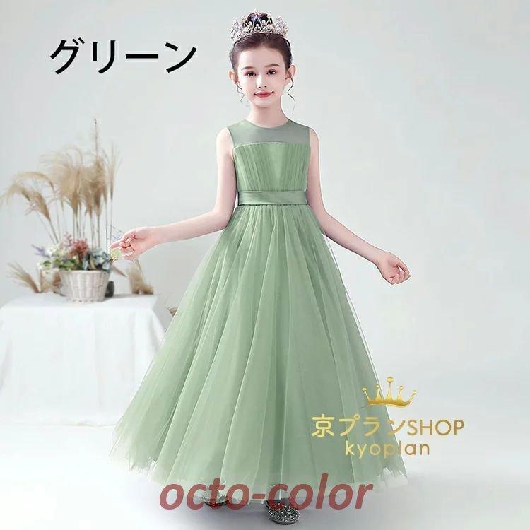 高級 子供ドレス ロング丈 発表会ドレス ジュニア 女の子 ロング コンクール ドレス 結婚式 110cm-160cm フォーマル リボン ノースリブ 無地 ピアノ発表会 ジ