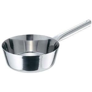■ 熱を平均に伝える極厚底のボディーは、電磁調理器に最適。もちろん全ての熱源に対応します。■ 握る手の形にあわせた凸凹のあるパイプハンドルは握り易く疲れません。また熱くなりにくい形状です。本体にはアルゴン溶接で接合している為、内面はスッキリ、滑らか。作業性は抜群。■ 美しく輝くミラー仕上げの極厚ボディはモリブデンが添加された最高レベルの耐久性。あらゆる熱源に対応。■ 200V電磁調理器は非常にパワーがある為、鍋の変形防止・安全面からボリュームは中以下で、鍋の状態、内部の温度には細心の注意をお願いします。■ 外寸 : 底径 : 130■ 内寸 : φ180深さ : 70■ 容量 : 1.3L■ 板厚・厚み : 0.8■ 電磁 調理器 : 200V■ 材質 : SUS444(モリブデン鋼)