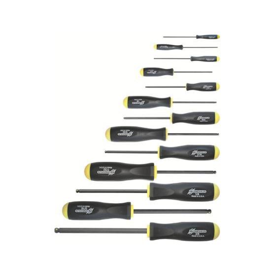 【商品説明】●六角穴付ボルトの締め付け、緩め作業に。緩めたネジをつかんで、手元に運ぶ作業に最適。指の届かない狭いところにあるネジに高所や天井など作業しにくい場所にあるネジに●ねじを傷つけないで保持できる六角ボールポイントドライバーです。●ねじを緩めて保持したまま手元に持ってくることができるねじつかみドライバーです。●ボールポイントの側面に埋め込んだ特殊ナイロン樹脂がねじをがっちりつかみます。【仕様】●型番:PBSX13 ●入数:13本 ●セット内容(インチ):0.050、1/16、5/64、3/32、7/64、1/8、9/64、5/32、3/16、7/32、1/4、5/16、3/8●セット内容(本):13 ●プロガード黒染め加工処理●硬度:HRC57〜61 ●ブレード部:プロテニアム合金鋼[[R上]](ボンダス特注鋼材)●表面:プロガード加工(通常の黒染め加工の5倍の耐食性) ●0.050、1/16、5/64、3/32、7/64、1/8、9/64、5/32、3/16、7/32、1/4、5/16、3/8インチ"}