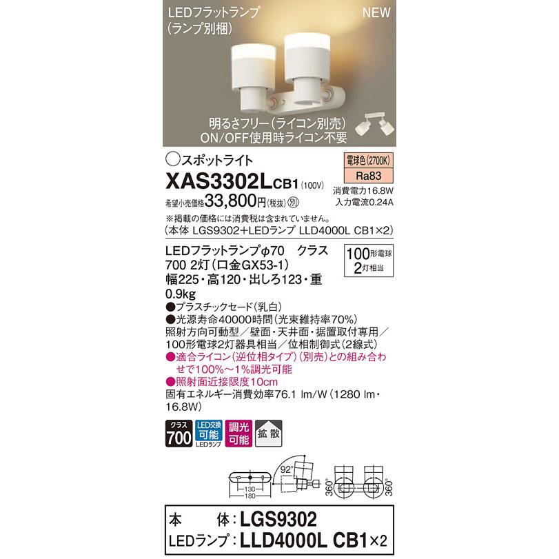 【法人様限定】パナソニック XAS3302LCB1 LEDスポットライト 電球色 調光【LGS9302 + LLD4000L CB1】