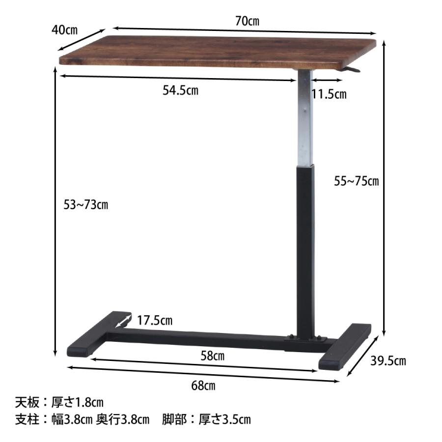 ガス昇降ベッドテーブル 隠しキャスター付 14656 ベッドテーブル 読書 介護 高さ調整 調節 レバー ベッドサイドテーブル 机