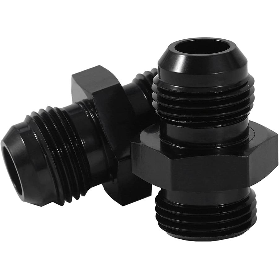 Stylemafia AN10 10AN フレア - 10AN ORB オス Oリング ボス 燃料ポンプ レールアダプター 継手 スレッド ストレートパイプ アルミニウム ブラック 2個パック