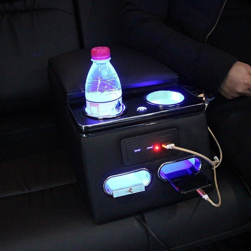 状態未使用 ◆適合車種:汎用◆素材:PVCレザー、木◆サイズ:45cm*24cm*20cm◆重量:約2775グラム◆カラー:ブラック、ベージュ 二色◆商品仕様:新品/ドリンクホルダー、 充電USBポート、間接照明(LEDブルー)、小物入れ