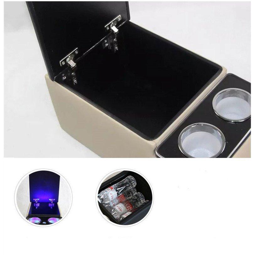 せ―ル 新品 LED照明付きリアセンターコンソール 収納ボックス 汎用 充電USBポート 小物入れ ドリンクホルダー 二色
