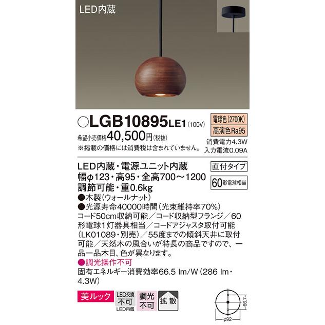 安心のメーカー保証【ご注文合計25,001円以上送料無料】T区分 パナソニック LGB10895LE1 ペンダント LED おしゃれ 北欧 実績20年の老舗
