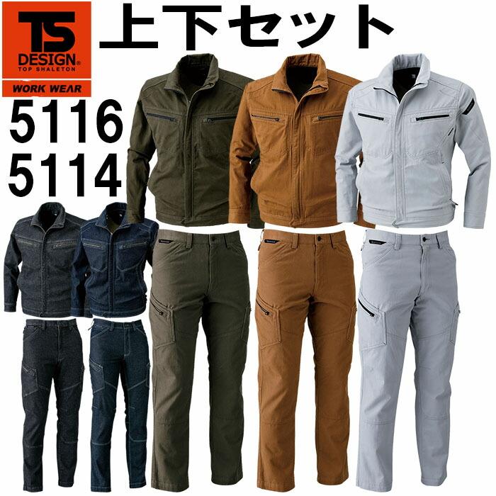 作業服 上下セット 藤和 TS DESIGN ジャケット 5116 5L-6L & メンズカーゴパンツ 5114 5L-6L 通年 ストレッチ デニム 作業着 メンズ