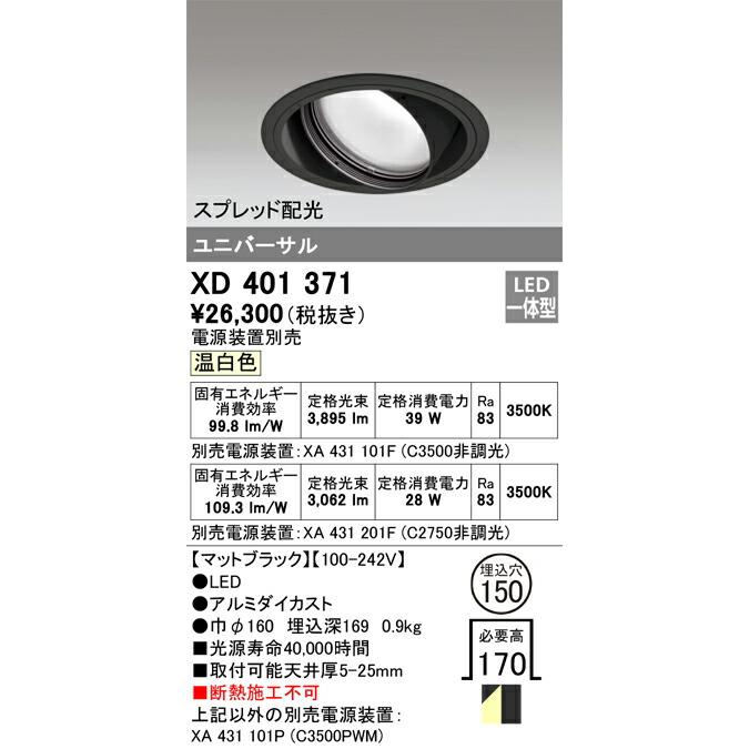 ODELICオーデリックLEDユニバーサルダウンライト(電源別売)XD401371