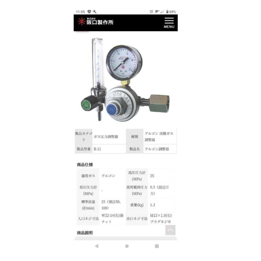 R-11 アルゴン調整器 数量限定 得値品 ガス流量計付き 阪口製作所 溶接に十分な流量を常に安定して供給できます!! 送料無料