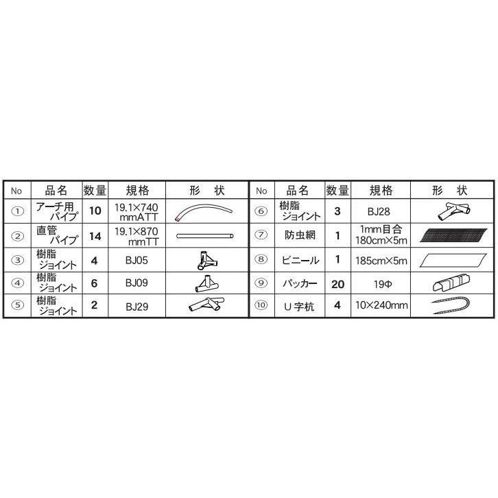 ●ビニール:t = 0.075農業用ビニール使用●サイズ:間口 92cm 奥行 363cm 高さ 55cm●重さ:約10kg●付属品:鉄製U字杭×4本お届け状態:お客様組立 配送エリア:全国※ただし、北海道・沖縄・離島や山岳地帯など一部の地域にはお届けできません。配送エリアについては事前にお問合せ願います。 お願い こちらの商品はメーカー直送商品となりますので、約1週間程の到着を予定して下さい。 また、お申し込みの商品が、「生産未定、中止品、メーカー在庫切れ」等で入荷予定がない際にキャンセルとさせていただく場合もございます。あらかじめご了承ください。 配送上の注意事項 商品の引渡しは、原則一階渡しとなります。 お届け先が、マンションなどの集合住宅の場合、商品のお引渡しは建物の入口までとなります。各住戸までの配送は行っておりません。