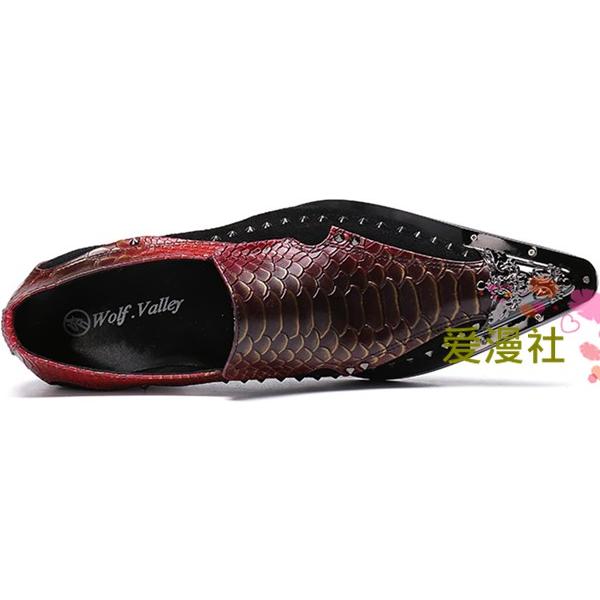 オペラシューズ メンズ ビジネスシューズ パッチワーク パイソン柄 リベット スチールトゥ ポインテッドトゥ 渋谷系 tステージ 舞台