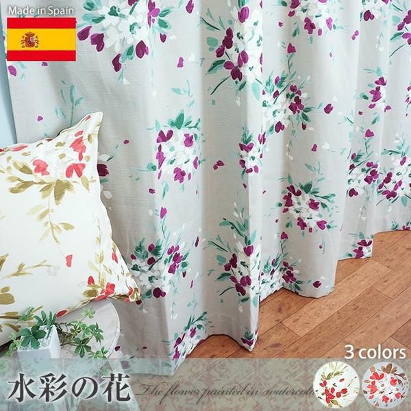 カーテン インポートカーテン 花柄 YH932 水彩の花 サイズオーダー巾201〜250cm×丈151〜200cm 1枚 OKC5