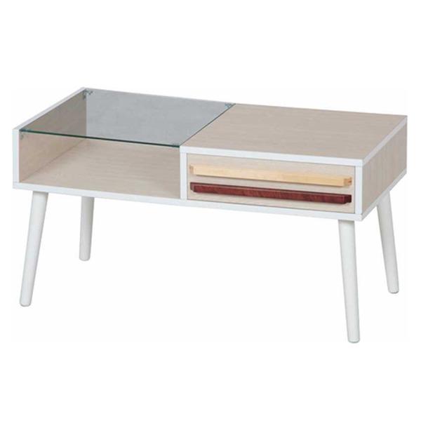 ローテーブル センターテーブル 約幅80cm ホワイトウォッシュ ガラス製天板 収納棚 引き出し1杯 オスロ リビング ダイニング〔〕