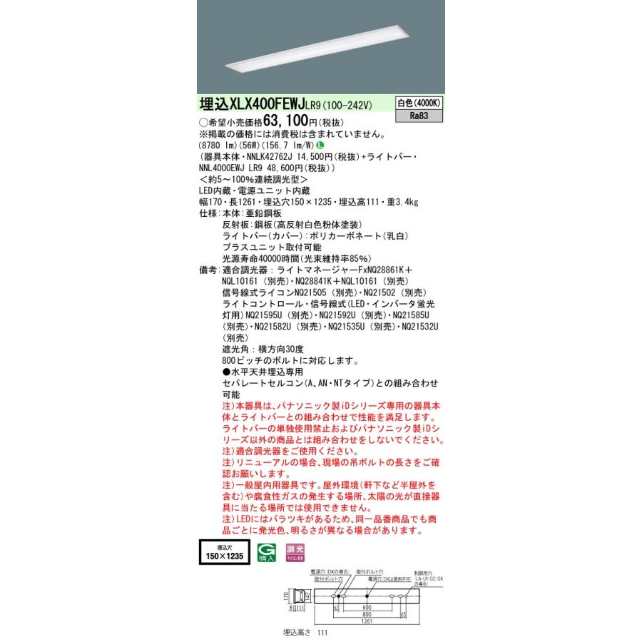セット品番 XLX400FEWJLR9セット内訳型番 NNL4000EWJLR9JANコード 4549980440117型番 NNLK42762JJANコード 4549077776518パナソニック iDシリーズ10000 lmタイプ白色埋込穴幅 150 mm調光