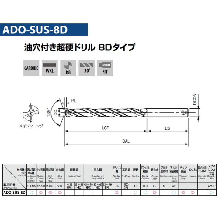 【送料無料】OSG ADO-SUS-8D 3.3 油穴付き超硬ドリル8Dタイプ