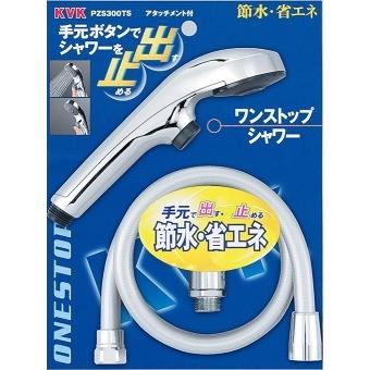 KVK ワンストップシャワー PZS300TS*1手元で一時止水ができる便利なワンストップ機能付減圧装置付フルメタルヘッドメタリックホース1.6m*2ネジ径 M22×2*1水栓本体の破損を防ぐため、必ず逆止弁付き水栓にご利用ください。*2他メーカーの水栓と接続する場合、別売の接続アダプターが必要となる場合がございます。
