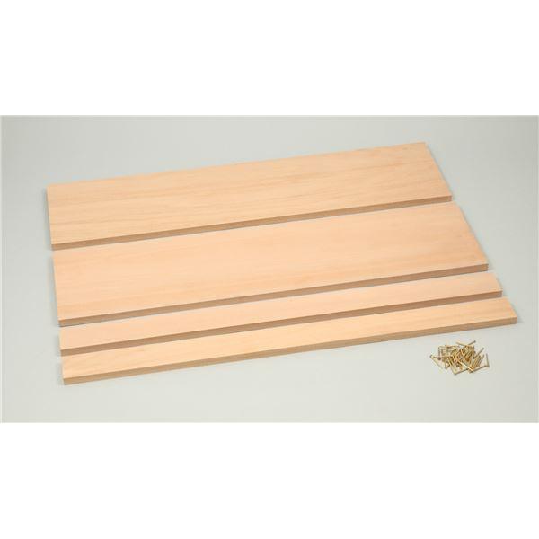 板材(アガチス)600×150×12MM、、、、2、板材(アガチス)600×40×12MM、、、、2、真鍮メッキ平頭釘N25、、、、、40本、説明書(作品例図面付)、、、、1