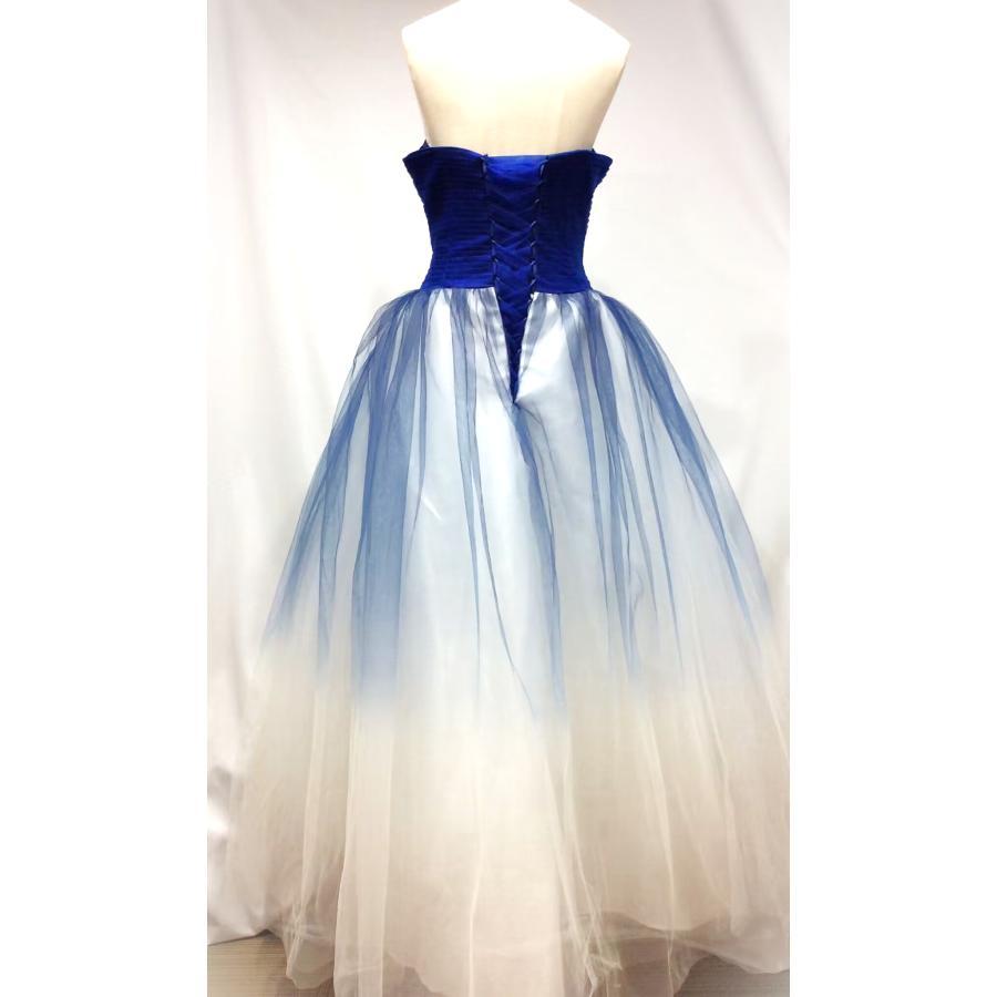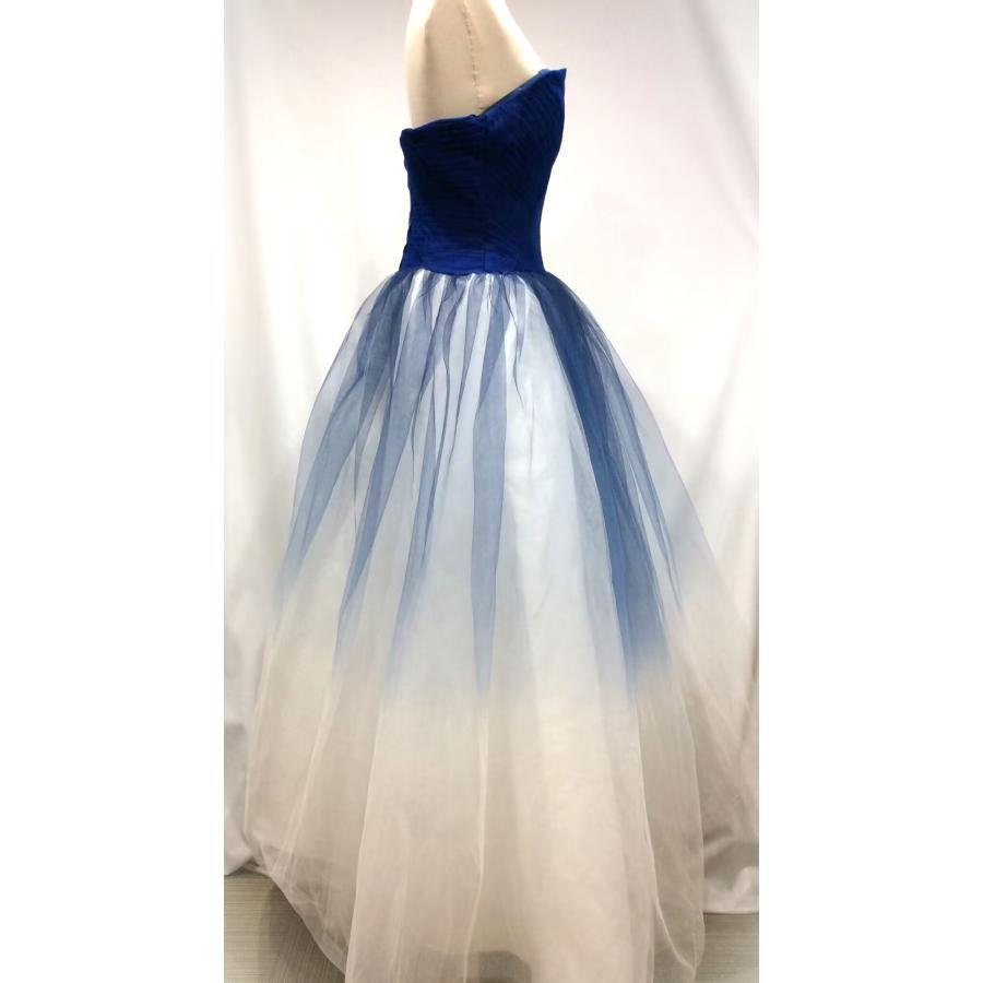 【Aランク】 S ウェディングドレス ドレス グラデーション きれいめ 上品 イブニングドレス 結婚式 青 白 紺 ネイビー ホワイト ブルー