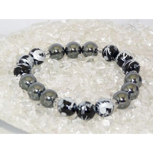 九頭龍 銀彫り龍オニキス 総合運 パワーストーンブレス 10mm