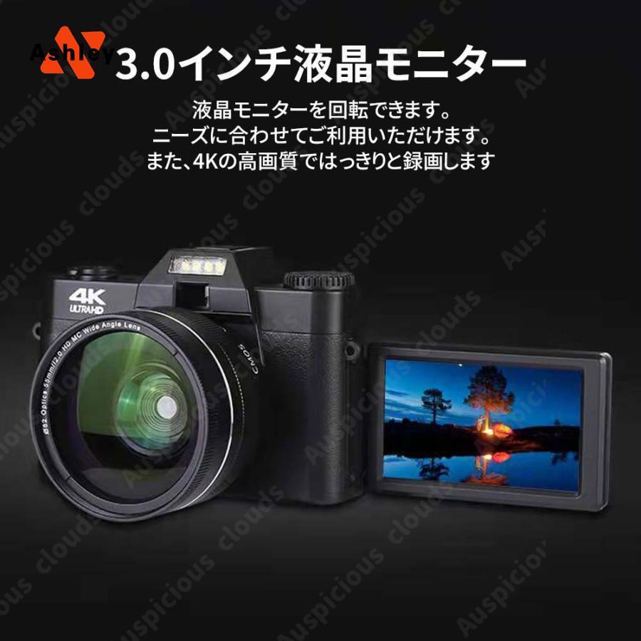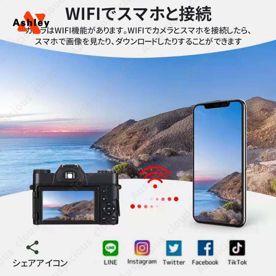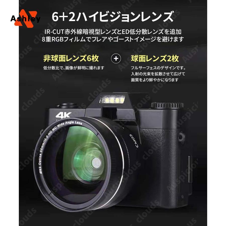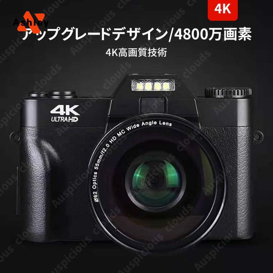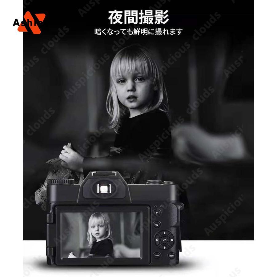 デジタルカメラ デジカメ 4K 4800万画素 ミラーレス一眼 ビデオカメラ 軽量 一眼レフ wifi機能 3.0インチ HD大画面 オートフォーカス 180°反転 防塵 耐衝撃