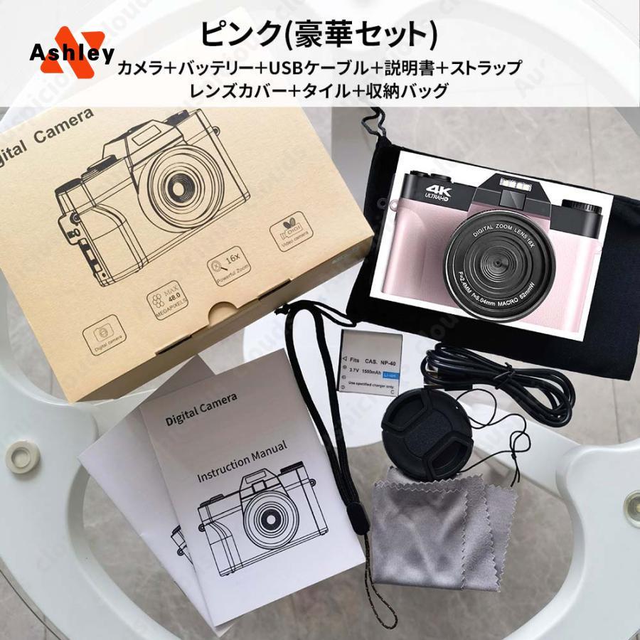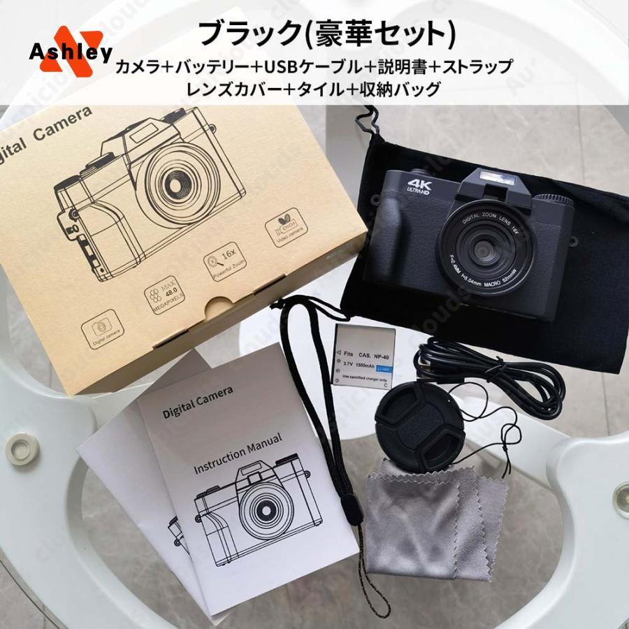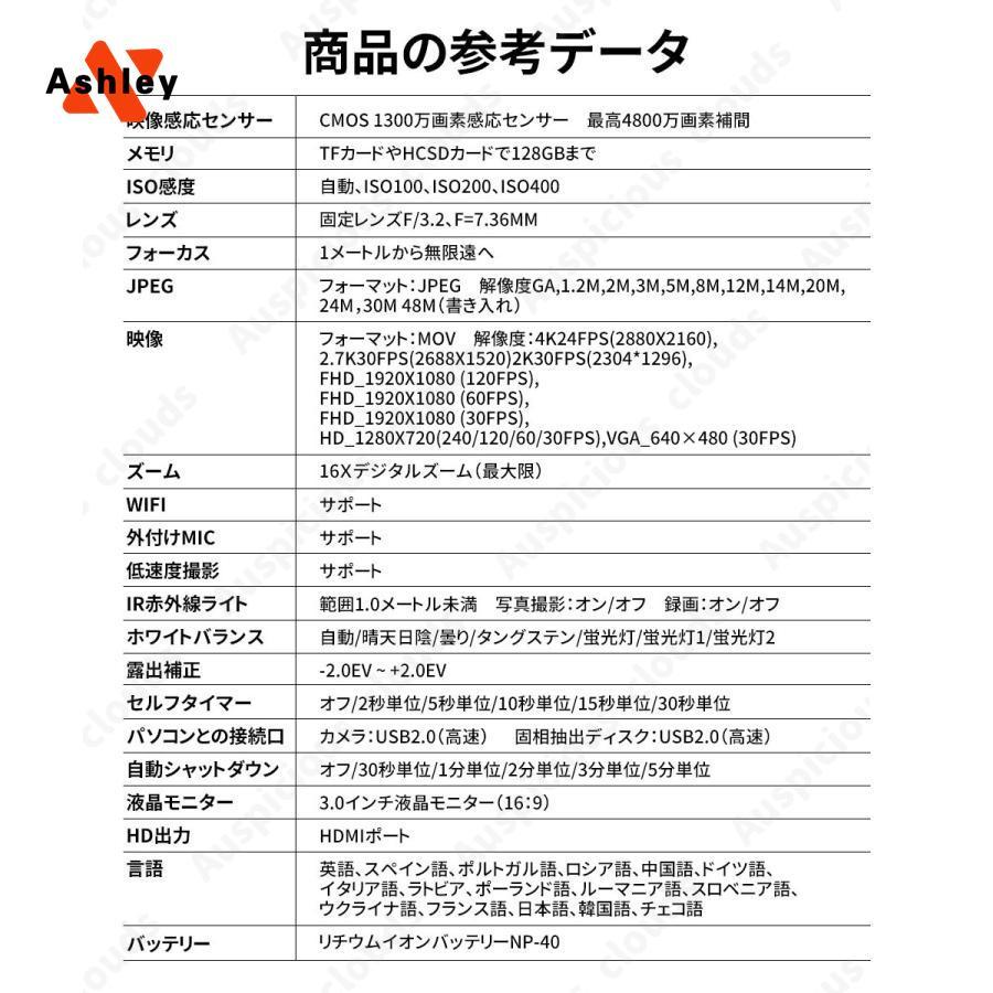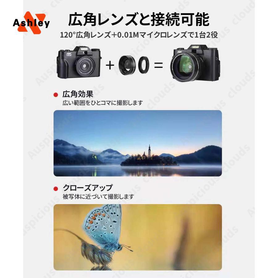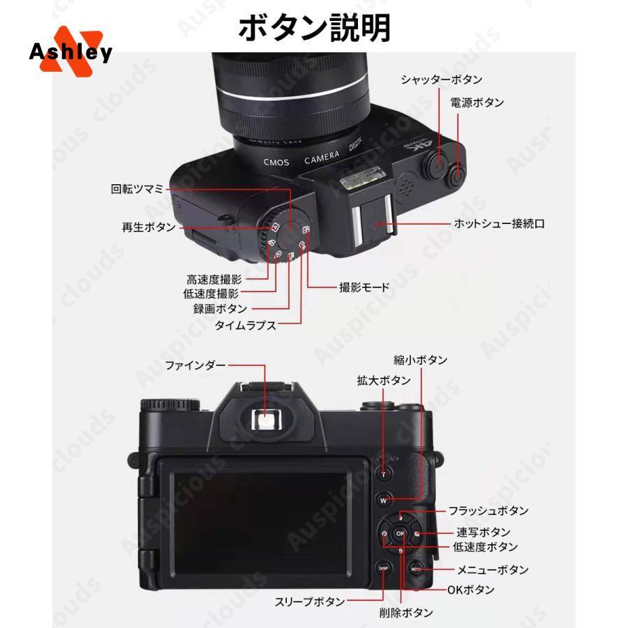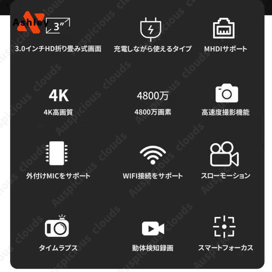 デジタルカメラ デジカメ 4K 4800万画素 ミラーレス一眼 ビデオカメラ 軽量 一眼レフ wifi機能 3.0インチ HD大画面 オートフォーカス 180°反転 防塵 耐衝撃