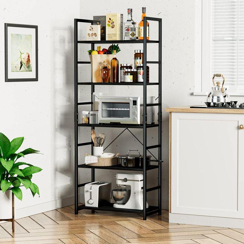 - 【5段多機能収納ラック】この5段式のアイアンラックは広々と使えます。さまざまなアイテムを置くのに有効に活用できます。書籍、アルバム、工芸品、鉢植えを飾ったり、置いたり使用してもOKです。きれいな化粧板を採用しており、傷や水分に強い、簡単に汚れを拭くことができます。棚板サイズ:幅60×深さ30センチ。