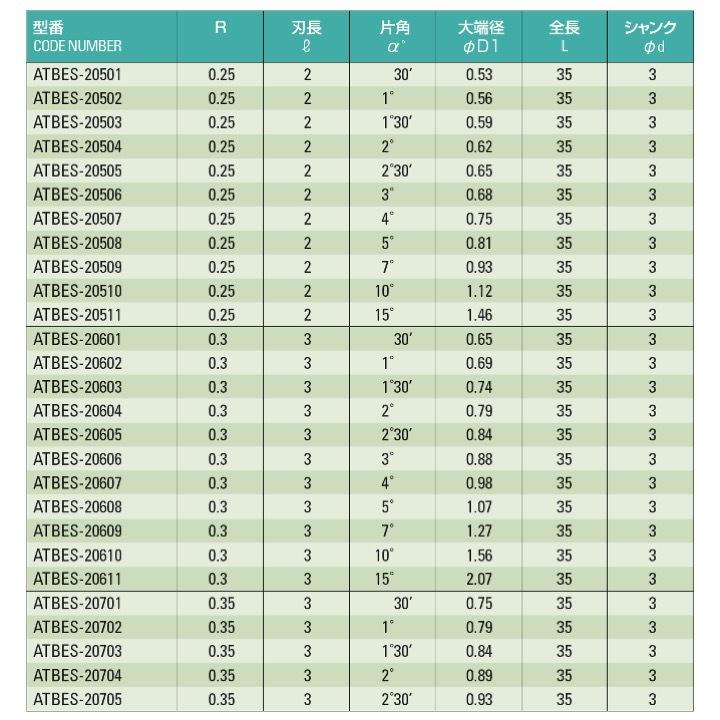 【送料無料】 ATOM ATBES-20902 テーパーボールエンドミル R0.45x1°