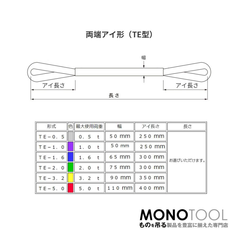 国産ソフトスリング トップスリング 両端アイ形(TE型)使用荷重:3.2t×3.5m 黄色
