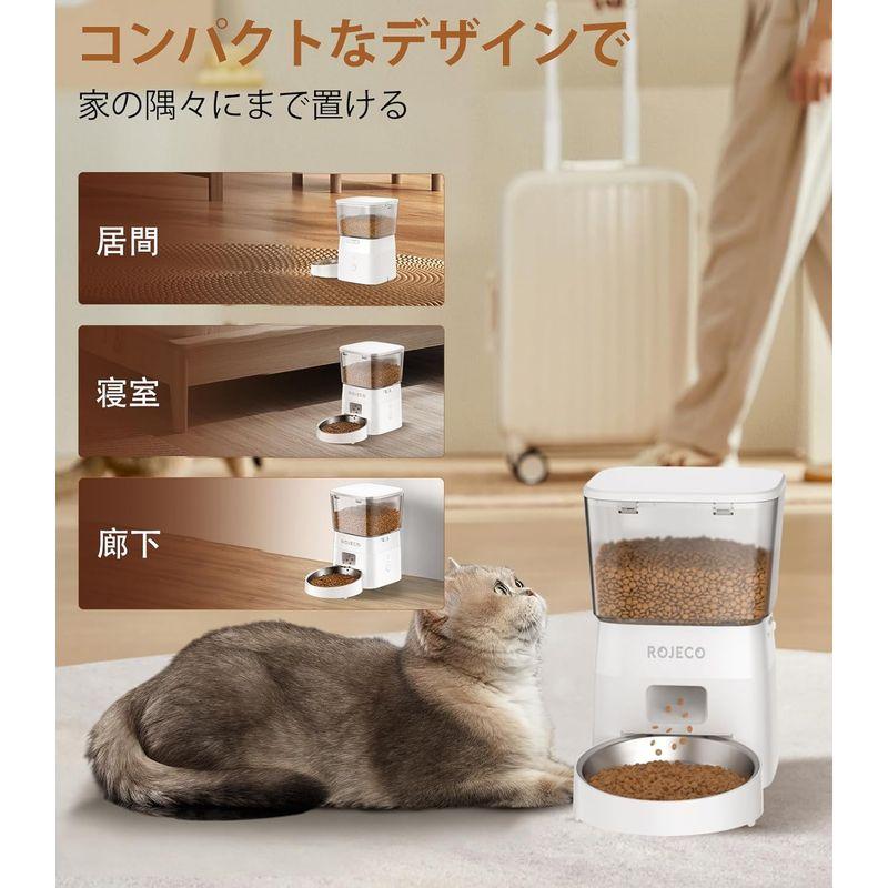 ROJECO WIFI式 自動給餌器 猫 餌詰まり防止 透明タンク 多頭飼いに向け 自動餌やり器 2L容量 1日6食 じどうえさやり 2WA