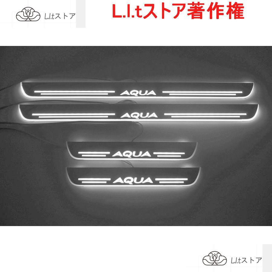 AQUA(アクア)LED 流れるスカッフプレート 白/ホワイト発光 内装パーツ イルミネーション 両面テープ付き 鏡面仕様 4枚セット NHP10に
