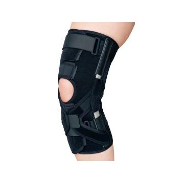 ACL(前十字靱帯)損傷時の前方動揺性のある膝関節のサポート両サイドにアルミ製オフセットジョイントを配置。側方安定性を向上。前面サポートストラップと固定ストラップ、伸縮ストラップで的確に4点を支持。脛骨の前方動揺を制御。固定ストラップに内蔵された非伸縮テープが常に的確な固定をサポート。膝蓋骨周囲に伸縮性に優れた素材を使用。膝の屈曲時の動きに対してフィット感を向上。後方に手を回さずにスムーズに着脱や調整が可能。※普通に立った状態で、膝蓋骨中心から10cm上の大腿周囲を計測してください。※計測値が2サイズのさかいになった場合は、大きい方のサイズを選んでください。