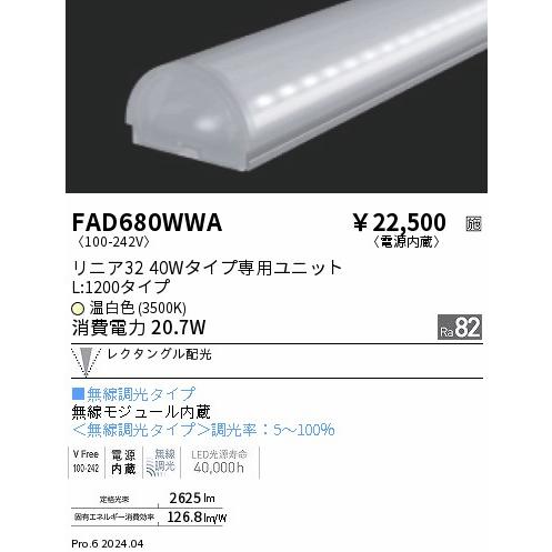遠藤照明 FAD680WWA リニア32 L1200タイプ 3500K 無線調光タイプ ENDO 電球 遠藤照明_直送品1_(ENDO) 照明器具_送料区分18 FAD-680WWA
