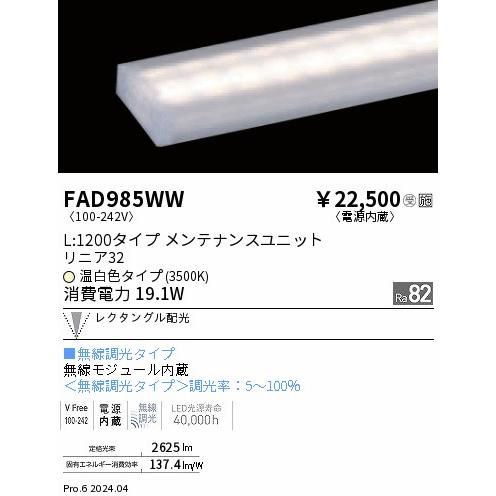 遠藤照明 FAD985WW リニア32 無線 レクタングル L1200 3500K ENDO 電球 遠藤照明_直送品1_(ENDO) 照明器具_送料区分18 FAD-985WW