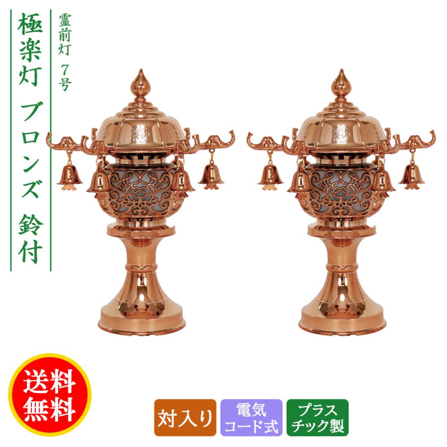 盆提灯 コンパクト ちょうちん 提灯 初盆 創作 モダン 霊前灯 極楽灯ブロンズ鈴付 対入り プラスチック製 電気コード式 ミニ かわいい 7号 2024