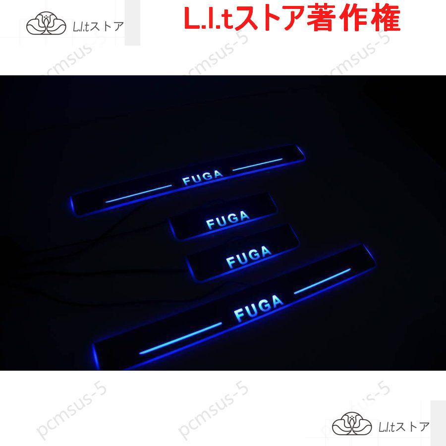 新品!NISSAN FUGA フーガY50/Y51流れるLEDスカッフプレート 内装 イルミネーション鏡面仕様 4枚セット 白/青発光 !