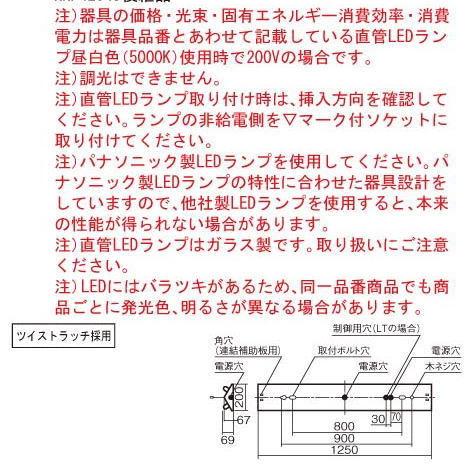 ★お取り寄せ品 ・メ−カ−在庫がある場合 2営業日〜3営業日発送(当店在庫がある場合は数量登録しています)(メーカ−在庫がない場合は 納期短縮申請により最短納期交渉を行い、交渉結果をご案内いたします)■天井直付型 40形 直管LEDランプベースライト プルスイッチ付 富士型器具◆希望小売価格(別売ランプ込) 46,300 円(税抜)【器具】NNF42045J LE9 16,300 円(税抜)【ランプ】LDL40S・N/29/38-K 15,000 円(税抜)x2■商品詳細■■光源◆LDL40×23800 lmタイプ:昼白色(5000K):LDL40S・N/29/38-K■寸法・質量◆幅:200 mm ◆長:1250 mm ◆高:69 mm◆質量:2.6 kg■仕様◆ランプ品名:LDL40S ◆器具光束:7370 lm ◆安定器出力型:定格出力型 ◆安定器補足:<出力固定型> ◆電圧:100〜242 V ◆消費電力:62 W ◆消費効率:118.8 lm/W◆【本体】亜鉛鋼板(クロムフリー)◆【反射板】亜鉛鋼板(白色)◆Ra84【適合ガード】FK42533◆入力電流(100V時):0.73 A◆入力電流(200V時):0.36 A◆入力電流(242V時):0.3 A■注意事項◆注)器具の価格・光束・固有エネルギー消費効率・消費電力は器具品番とあわせて記載している直管LEDランプ昼白色(5000K)使用時で200Vの場合です。◆注)調光はできません。◆注)直管LEDランプ取り付け時は、挿入方向を確認してください。ランプの非給電側を▽マーク付ソケットに取り付けてください。◆注)パナソニック製LEDランプを使用してください。パナソニック製LEDランプの特性に合わせた器具設計をしていますので、他社製LEDランプを使用すると、本来の性能が得られない場合があります。◆注)直管LEDランプはガラス製です。取り扱いにご注意ください。◆注)LEDにはバラツキがあるため、同一品番商品でも商品ごとに発光色、明るさが異なる場合があります。