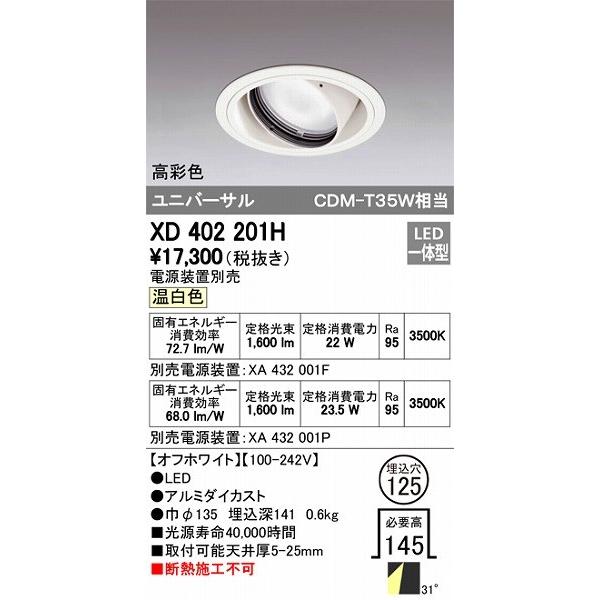 オーデリック XD402201H ユニバーサルダウンライト LED(温白色)