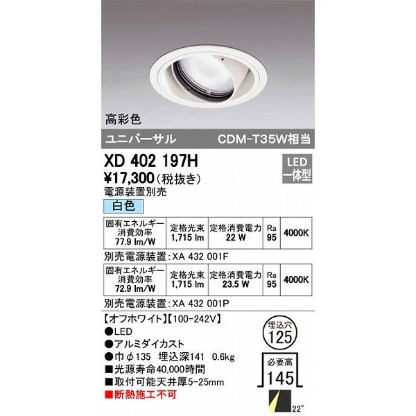 XD402197H オーデリック ユニバーサルダウンライト LED(白色)