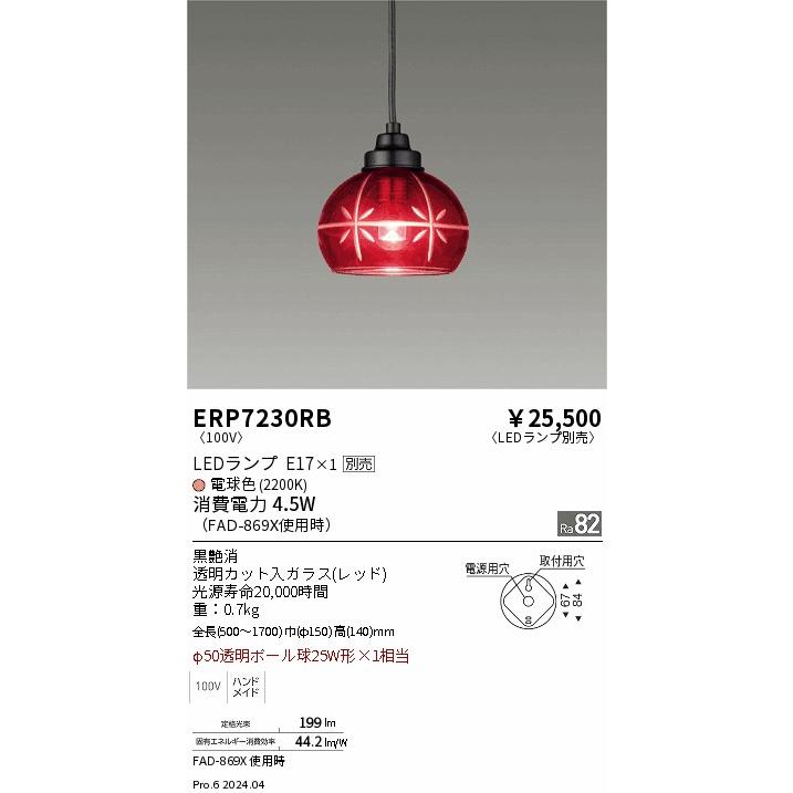 遠藤照明 ペンダント ランプ別売 無線調光 ERP7230RB 工事必要